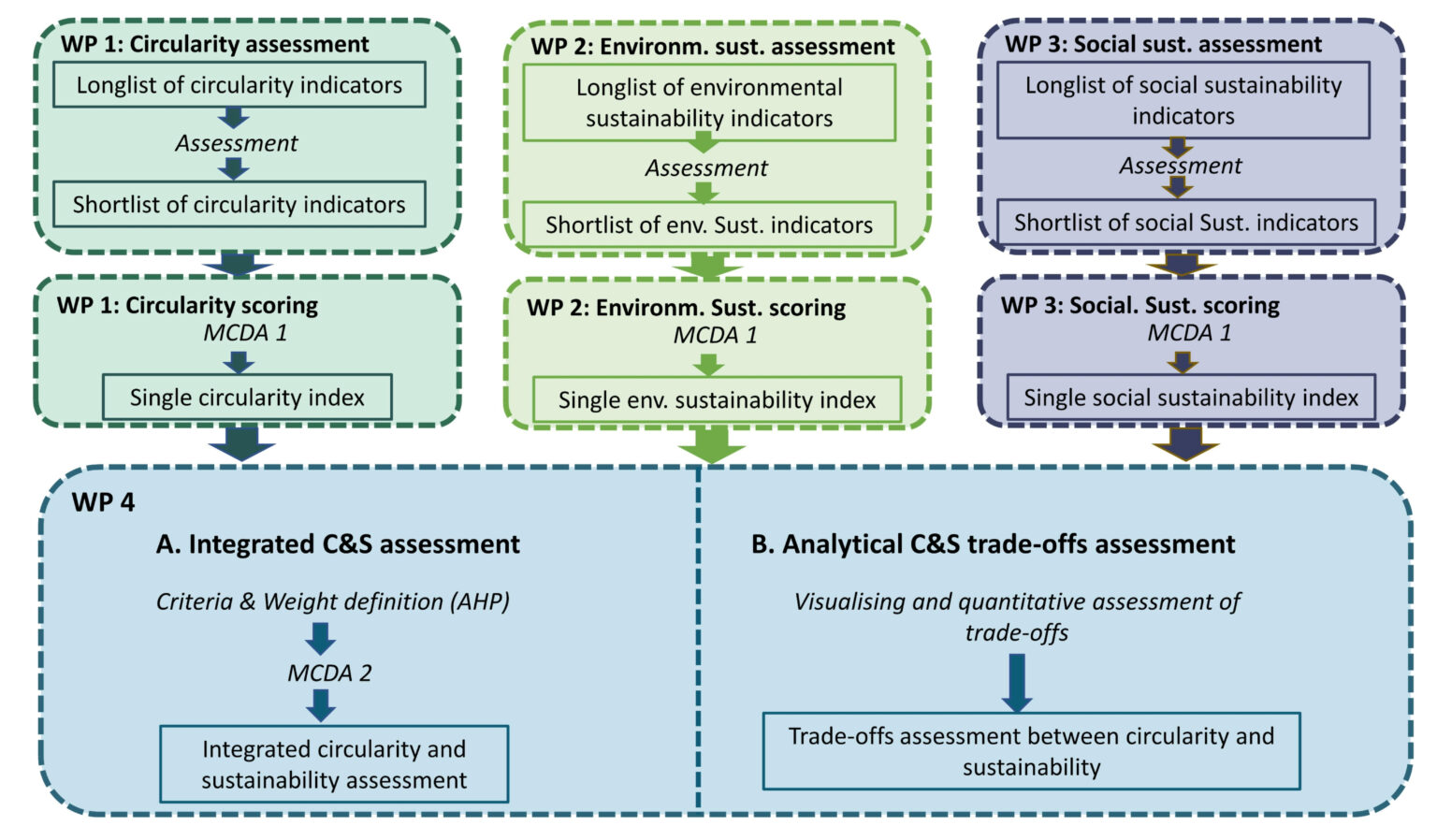 - Integrated Assessment and Trade-off Analysis: Two main methods are developed: one for a holistic assessment across all dimensions and another to examine trade-offs between circularity, environmental, and social sustainability.